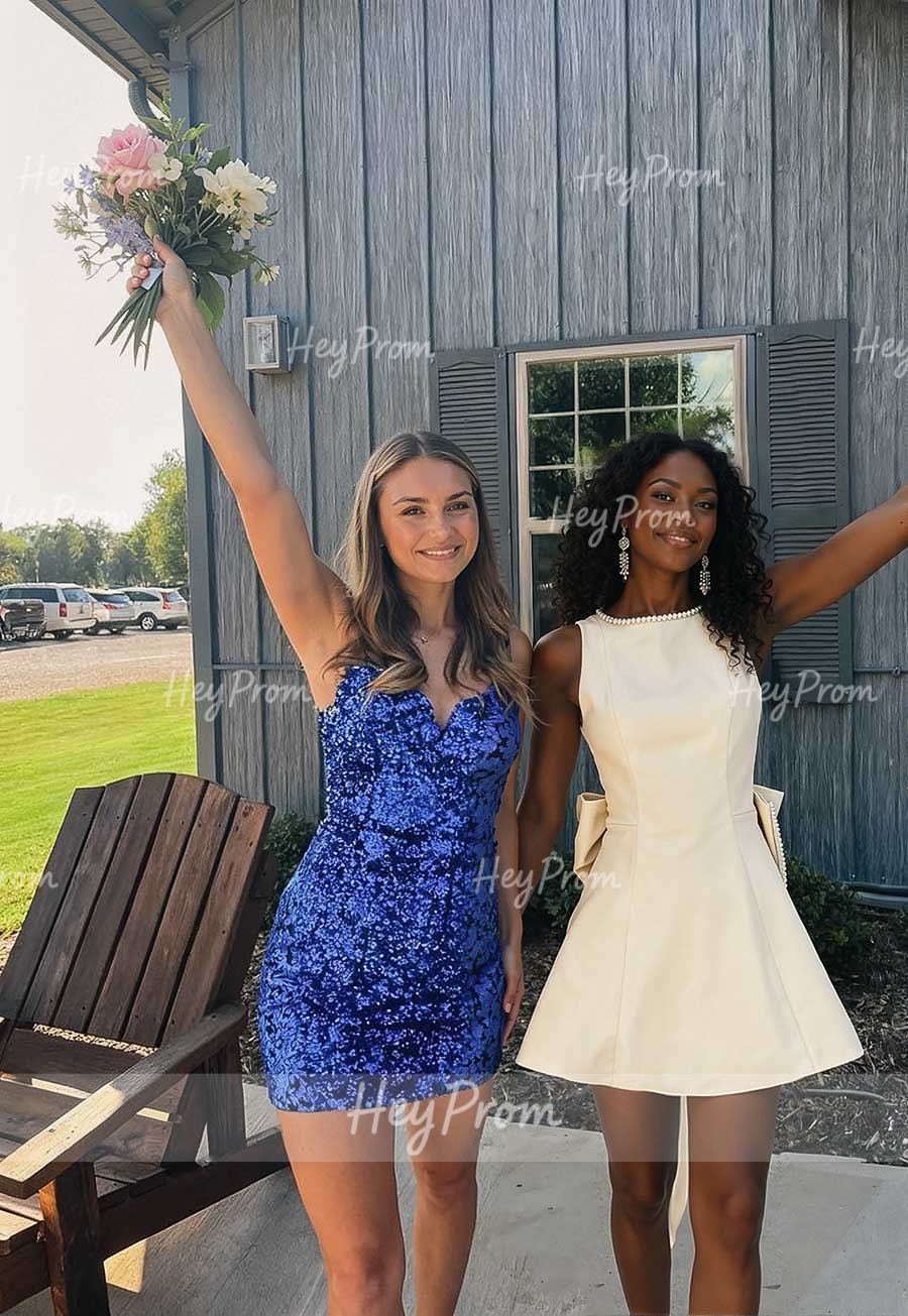 Elegant Beading Scoop Neck A-Line Short/Mini Elastic Satin Homecoming Dresses With Bow(s) #SHD10591